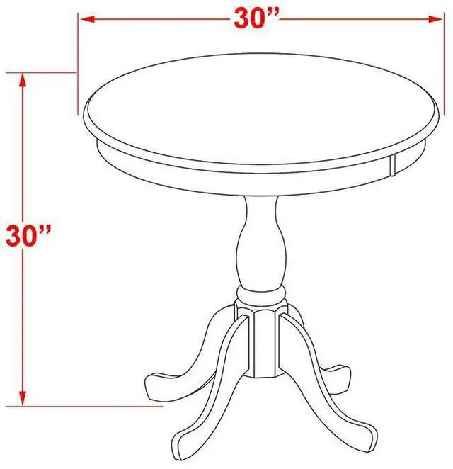 Dimensions of the dining table are: Length 30; Width 30; Height 30.
