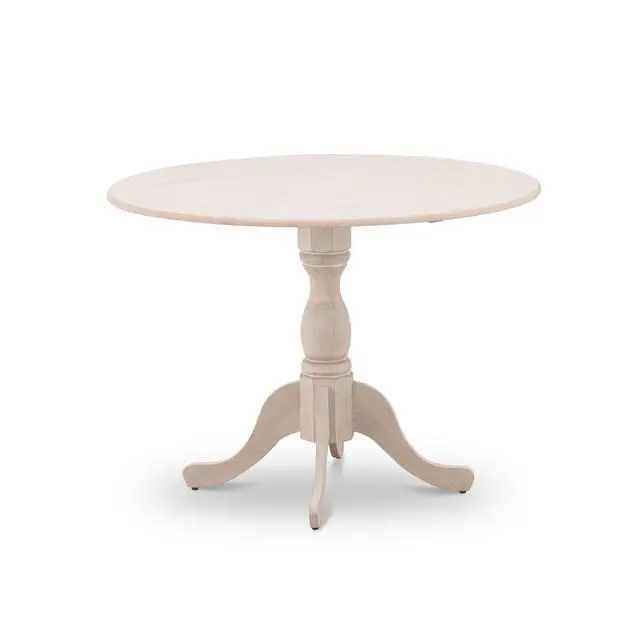 EAST WEST FURNITURE WOOD DINING TABLE ROUND DROPS LEAVE SMALL TABLE TOP AND PEDESTAL LEGS