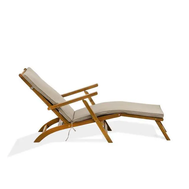 Our outdoor lounge chair for the outside area are suitable for any place. You can use them on the beach, patio, poolside, or water park. Classy and durable, our beach lounge chair will be a good helper when you relax and talk. The camping lounge chair have strong weather resistance, arms that are suitable for outdoor use, and are very easy to assemble. Created from sustainable Acacia wood, each durable camping lounge chair comes fully assembled so there is no delay in getting right to relaxation and relaxing is exactly what you'll be doing in these comfy pool chair.