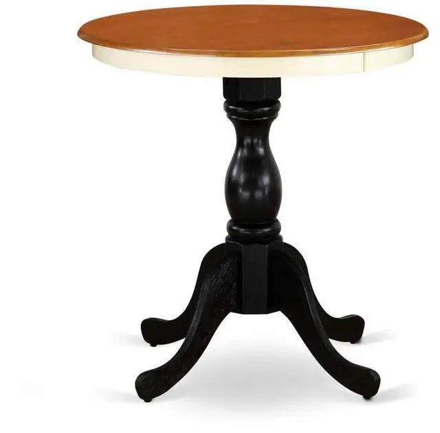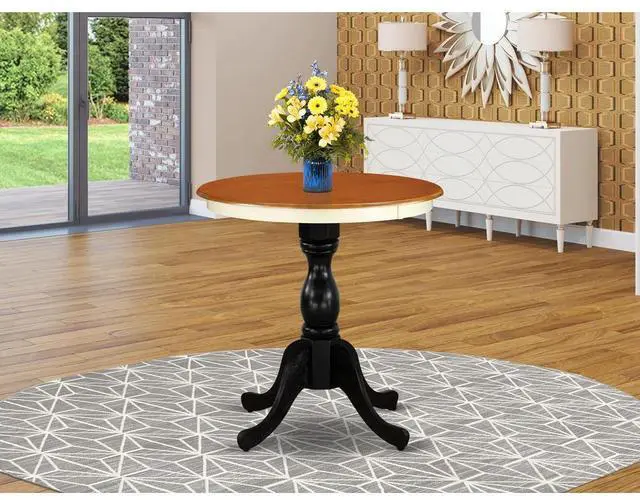 Decorate Your Dinette Area With This Contemporary Eden Dining Table. This Round Shape Wooden Table Features A Pedestal Base That Will Illustrate Your Dining Area With A Sophisticated Look. With A Soft Rounded Bevel At The Edge Of The Table Top, This Well-Designed And Comfortable Kitchen Dinette Table May Be Used For Hours At A Time. This Small Dining Table Requires A Very Little Space And Would Be A Great Choice If You Are Struggling With Space In Your Dining Area. Made Up Of Rubber Wood, The Mahogany And Black Two Tone Finish Table Is Stable And Offers A Sturdy Finish.