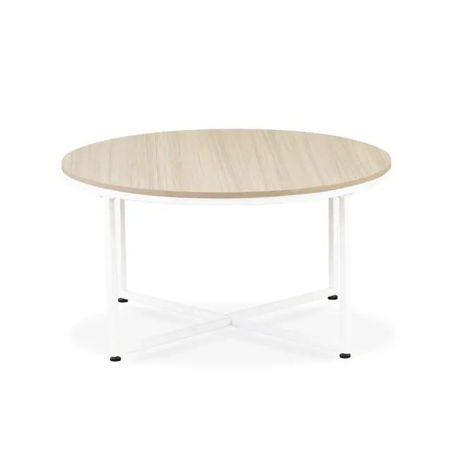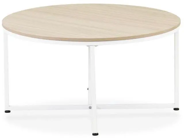 Elevate your living room with this modern coffee table and experience the modern charm that seamlessly complements existing farmhouse decor. Our exceptional collection draws inspiration from vintage ingenuity and elegant simplicity, adding character to your home. The mid-century style of our round coffee table makes it suitable for both contemporary and classic settings. White powder-coated metal accents imbue a rich sense of character, blending well in transitional or country-style rooms. The elegantly sturdy powder-coated steel frame provides extra support and durability. Upgrade your home with this coffee table from the East West collection, featuring a wooden board shelf that offers ample storage space for books, magazines, and other items.