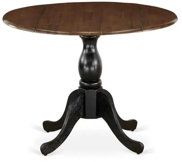 East West Furniture East West Furniture Wood Kitchen Table with Drop Leaves - Walnut Table Top and Black Pedestal Leg Finish