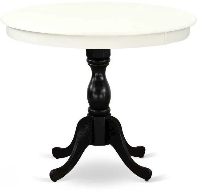 • East West Furniture East West Furniture Antique 36" Round Kitchen Table for Small Space - Linen White Top & Black Pedestal