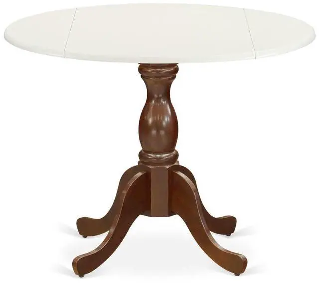 East West Furniture East West Furniture Modern Dining Table with Drop Leaves - Linen White Table Top and Mahogany Pedestal Leg Finish