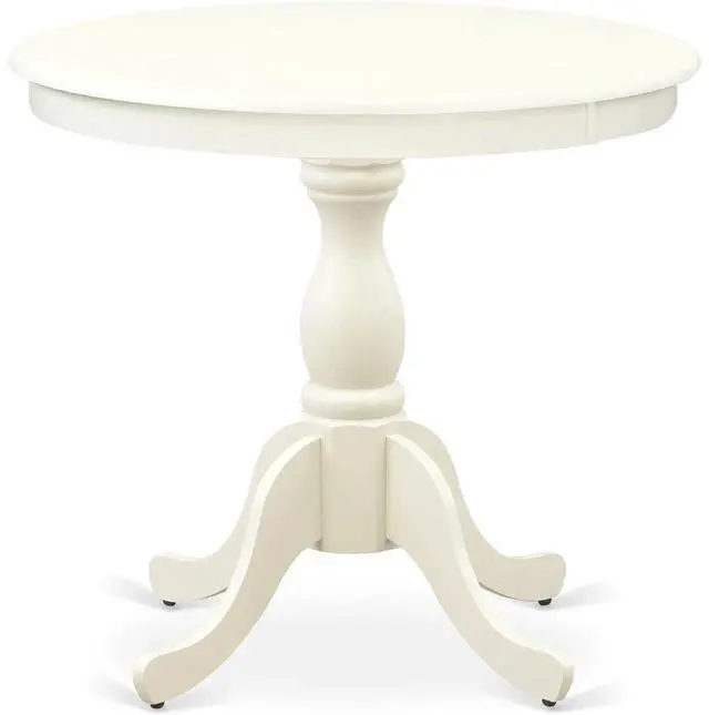 Our dining room table features a Linen White Round Table top and Linen White Solid wood Pedestal Leg. The mid century dining table goes well with all styles of decoration, and you can use it in your dining area with confidence. Our modern dining table comes in easy parts that are simple to assemble. Easy-to-follow instruction is included in the package, and no additional tools are required for assembly. Keep enjoying East West Furniture!