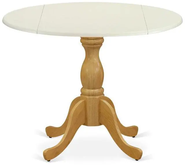 • East West Furniture East West Furniture Wood Dining Table with Drop Leaves - Linen White Table Top and Oak Pedestal Leg Finish