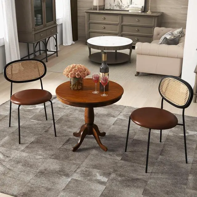 32 Inch Round Dining Table: This retro dining table measures 32" (Diameter) x 32" x 30" (Height). The spacious tabletop is ideal for dining use. Besides, it weighs approximate 28.5 lbs. With elegant, subtle edges and simple design, the classical pedestal table brings a chic sophistication to your dining space.