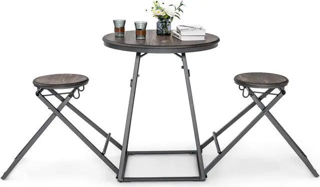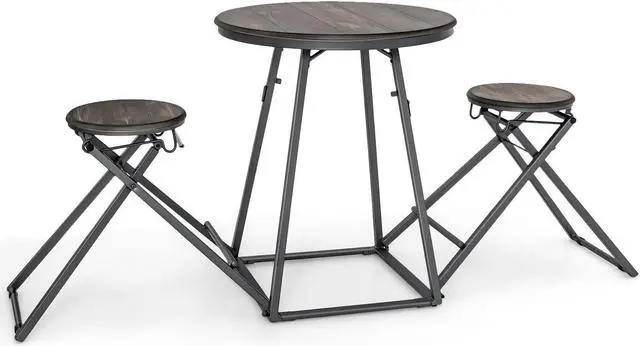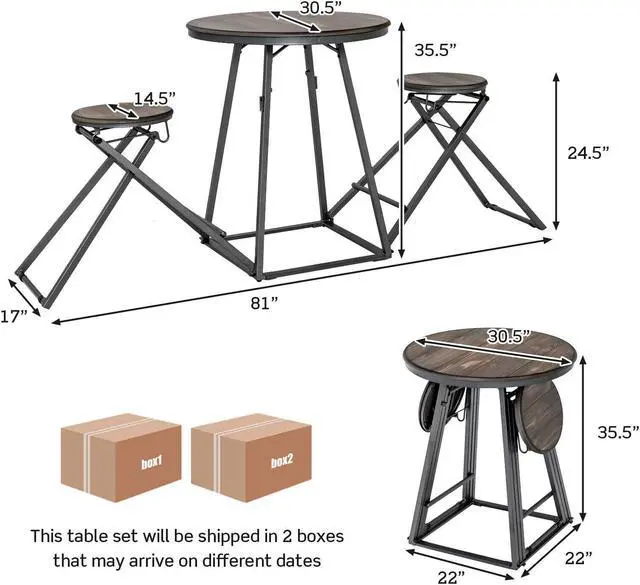Fordable and Space-saving Design: The 2 round stools are jointed to the table. When not in use, these stools can be folded and hanged on the table legs. This fordable bar table and stool set is a good resolution for dwellers who have limited available living space.