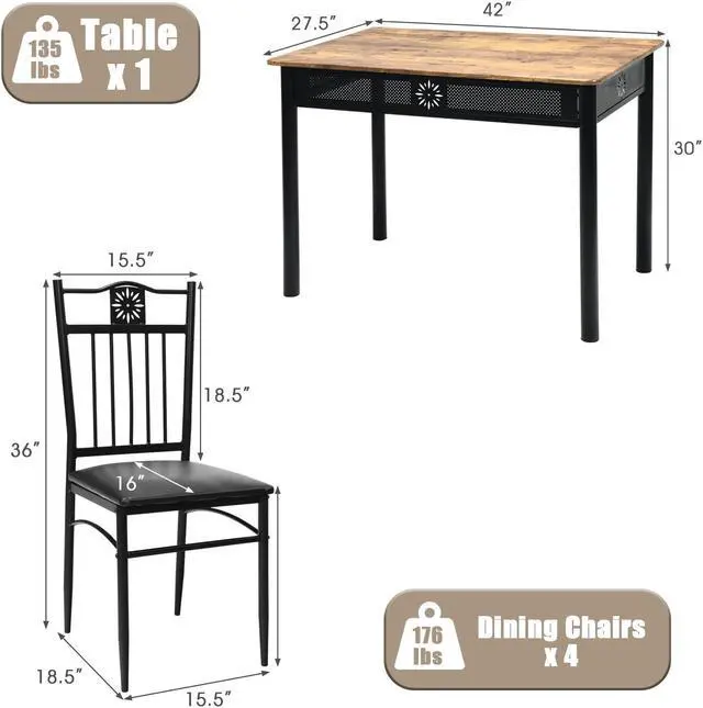 -Sold in a complete set, includes 1 table and 4 chairs