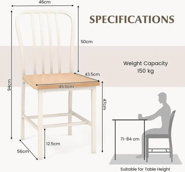Heavy-duty Metal Frame: Crafted with a sturdy metal frame with reinforced crossbars, these kitchen chairs are built to last, providing you with long-lasting comfort and support. What's more, the non-scratch foot pads can enhance stability and protect hardwood floors.