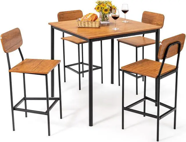 5-Piece Counter Height Dining Table Set: The dining table set features a counter height dining table and 4 bar stools, allowing you to enjoy delightful dining or drinking time with family or friends. In addition, with the clean lines and delicate wood grain finish, the industrial table set can perfectly blend into any room decoration.