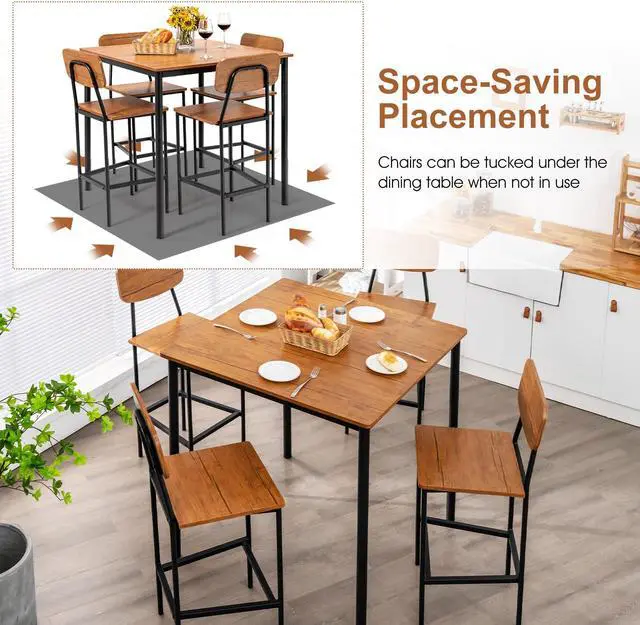 Space-Saving Design: Both 4 stools can be conveniently tucked under the dining table when not in use, which can not only maximize space utilization but also maintain the aesthetics. It can be a good solution for small places, such as small condos, apartments, kitchens, living rooms, and more.