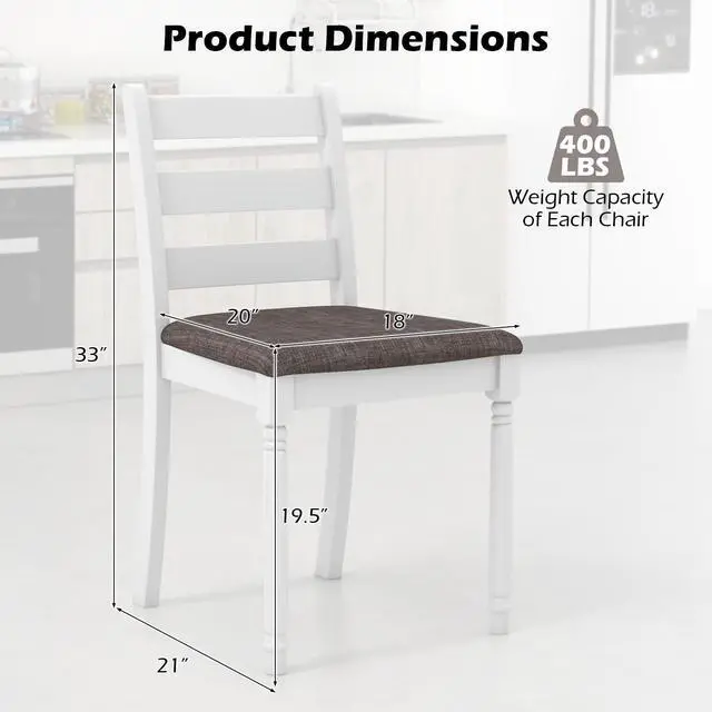 Solid Wood Frame: Crafted from solid acacia wood legs, these wooden kitchen chairs offer exceptional durability and sturdiness. Each chair holds a max weight of 400 lbs. Additionally, the each chair is equipped with anti-slip foot pads to add stability and protect your floors from scratches.