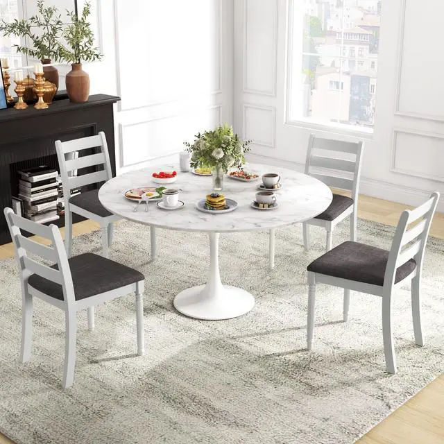 Rustic Farmhouse Aesthetic: Featuring a charming farmhouse design, these armless accent chairs add a touch of rustic elegance to any space. The classic look, with delicate carved patterns, blends seamlessly with various decor styles, from modern to traditional, enhancing the ambiance of your dining area.
