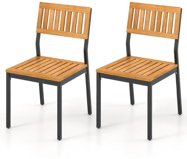 Versatile Design: The fusion of acacia wood and metal accents gives these chairs a modern and rustic appeal. Whether placing them in your dining room, kitchen, patio, deck, or garden, they effortlessly complement any decoration style.