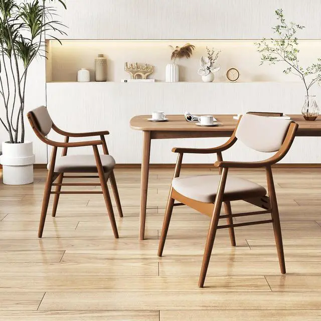 Sturdy and Reliable Construction: Built on natural rubber wood supporting frames, these dining chairs are not only visually appealing but also reliable and long-lasting. Through delicate craftsmanship, the wood surface is smooth and splinter-free, ensuring safety.