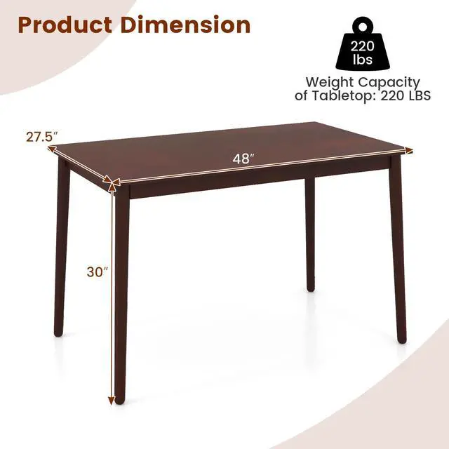 Wide Tabletop for 4: With a generous 48" x 27.5" tabletop, the dining table offers ample space for 4 people to dine and entertain. Whether it's a family meal or a gathering with friends, the rectangular table can satisfy your needs.