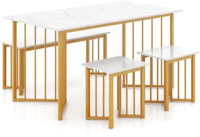 Gorgeous and Elegant Appearance: Featuring realistic white marble grain veneer, the space-saving dinette set combines easy maintenance and exquisite appearance to enhance your home decor. In addition, the gold-finished metal frame will add a touch of opulence to your dining space.