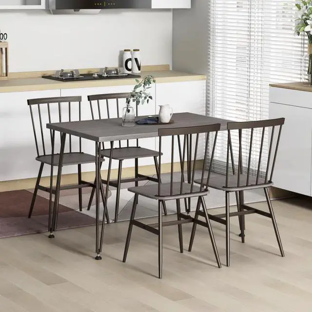 Easy Maintenance and Assembly: The dining table boasts a premium veneered MDF tabletop, which is waterproof and scratch-resistant, making maintenance a breeze. Additionally, with its simple structure and clear illustrations in the user's manual, this dining set is easy to set up.