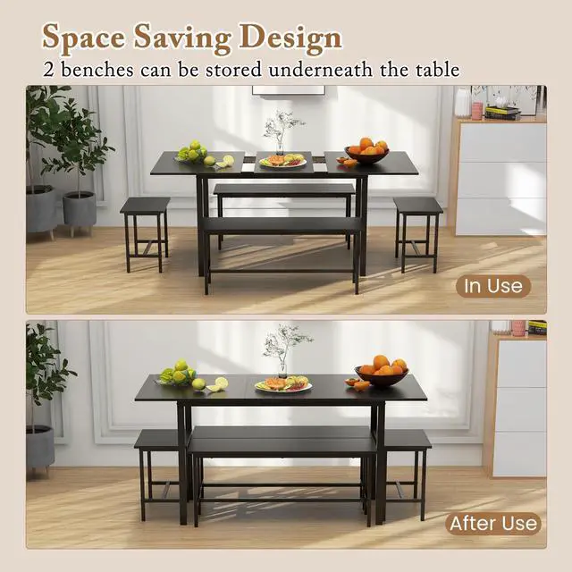 Space-saving Design: When not in use, the benches can be neatly tucked under the table to create more activity space. The space-saving storage will fully utilize your space, making the 5 piece kitchen table set ideal for smaller apartments, studios, or any area where space is limited.