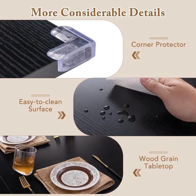 Considerate Details: Featuring anti-collision protectors on each corner, the dining table will protect you from accidental bumping or scratching. Besides, the dining table set features anti-slip foot pads, which not only offer stability during use but also prevent any scratching to your floors.