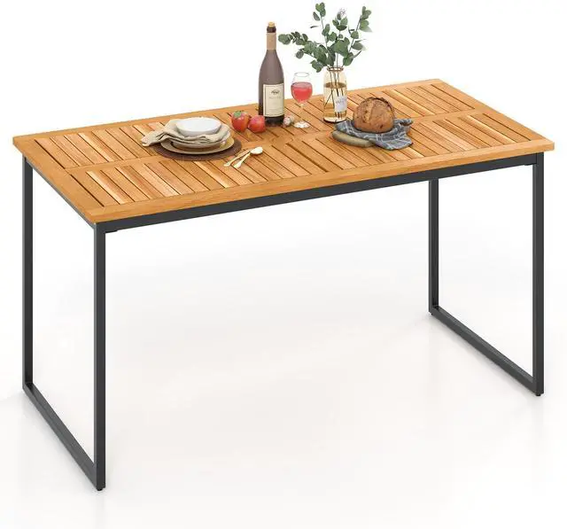 Well-crafted Wood Tabletop: Crafted from natural acacia wood, the outdoor dinner table is not only crack-resistant but also exudes a timeless rustic appeal. Additionally, the wooden surface features water-based painting for easy maintenance. Please do not leave the table in outdoors during rainy days.