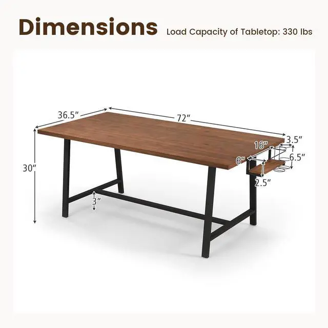 Ample Dining Space: Make every big gathering of 5-7 memorable with the 72" long dining table. It provides generous dining space in the kitchen, restaurant or dining room, while bringing more industrial charm to your delightful meals.
