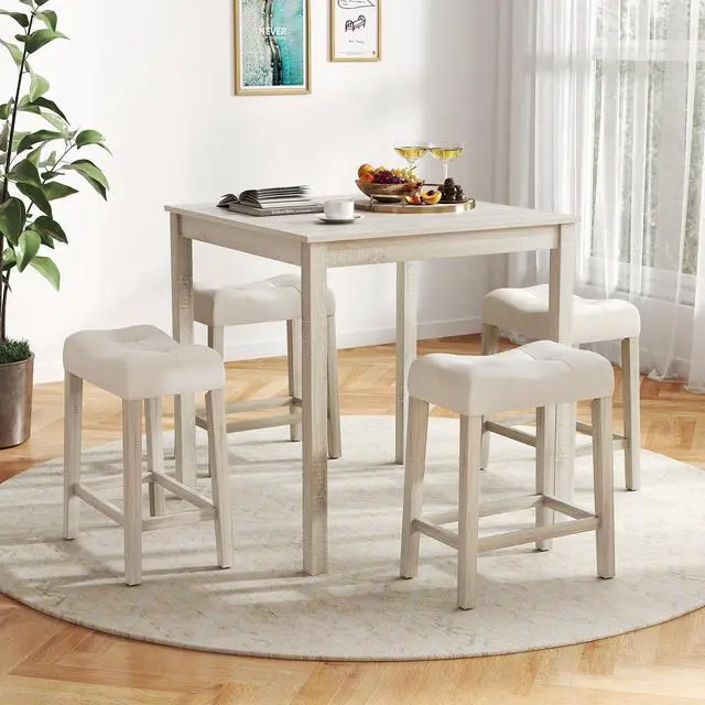 Compact 5-Piece Dining Set: This dining set includes a square table and 4 padded stools, making it perfect for small spaces like apartments or breakfast nooks. Designed to comfortably accommodate 4 people, the set features a space-saving design where stools can neatly tuck under the table when not in use, maximizing limited space.