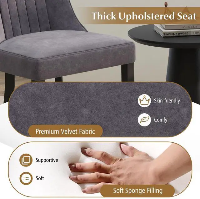 Upgraded Sitting Experience: The dining room chairs are upholstered in soft velvet fabric and padded with supportive foam to enhance your comfort. Plus, the thick seat cushion and tilted high backrest of the accent dining chairs are designed to relieve the fatigue of your body.
