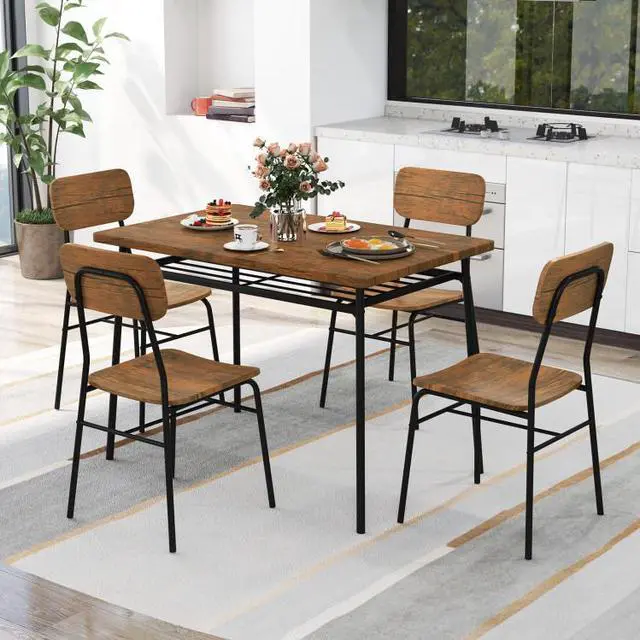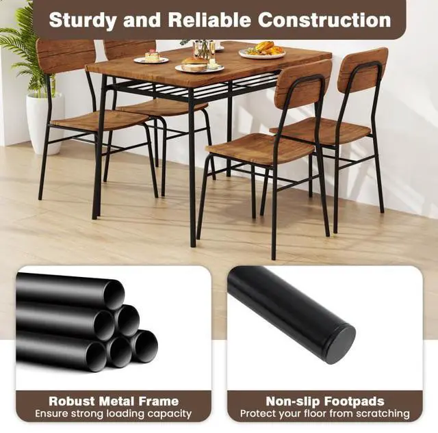 Versatile Application: The fusion of retro brown wood finishes and metal accents exudes a timeless charm, infusing your dining space with a sophisticated and inviting allure. Whether hosting a formal dinner, casual brunch, or cozy game night, this versatile dining set can be a perfect choice.