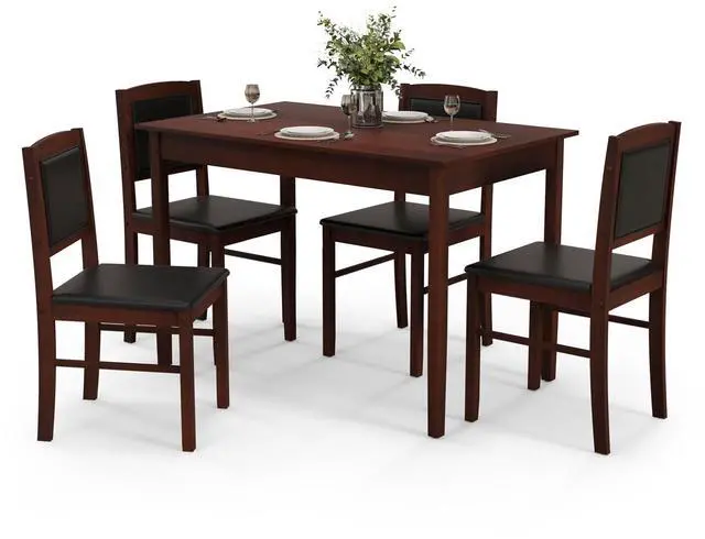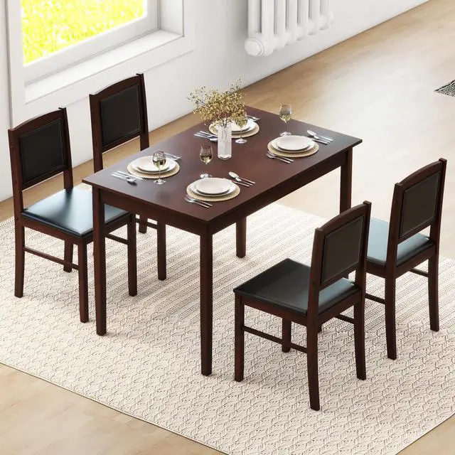 SlickBlue 5-Piece Dining Set for 4 with Rubber Wood Legs for Small Dining Room-Brown