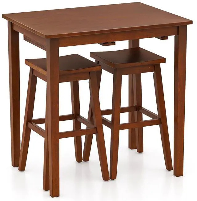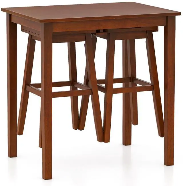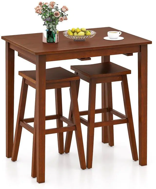 Space-saving Design: Maximize your space with the space-saving design of this bar table set, where the 2 stools can be hung beneath the table when not in use. Its compact design is perfect for small areas, making it an excellent choice for apartments or kitchens.
