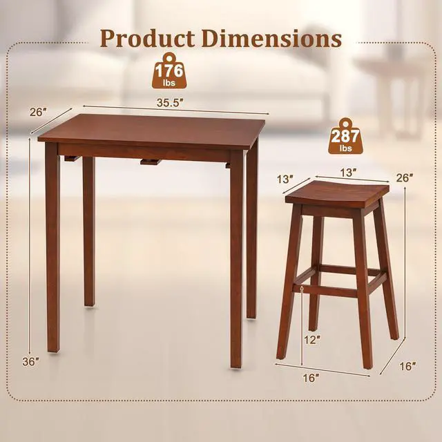 Solid Rubber Wood Frame: Constructed with a solid rubber wood frame, the counter height dining set offers reliable support, ensuring durability and stability for everyday use. The reinforced corners of the table frame enhance stability and prevent wobbling.
