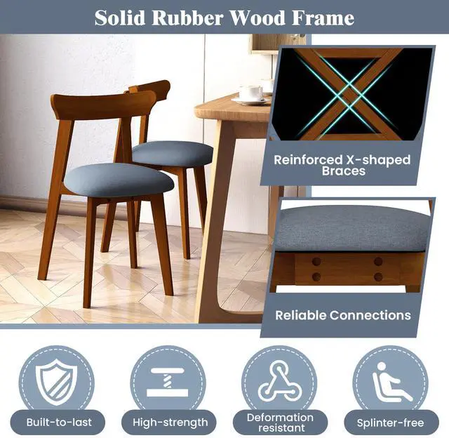 Robust Construction: Crafted from deformation-resistant rubber wood, our dining chairs ensure strong support and long-lasting durability. Additionally, the reinforced X-shaped braces underneath the seat provide enhanced stability, making it reliable for daily use.