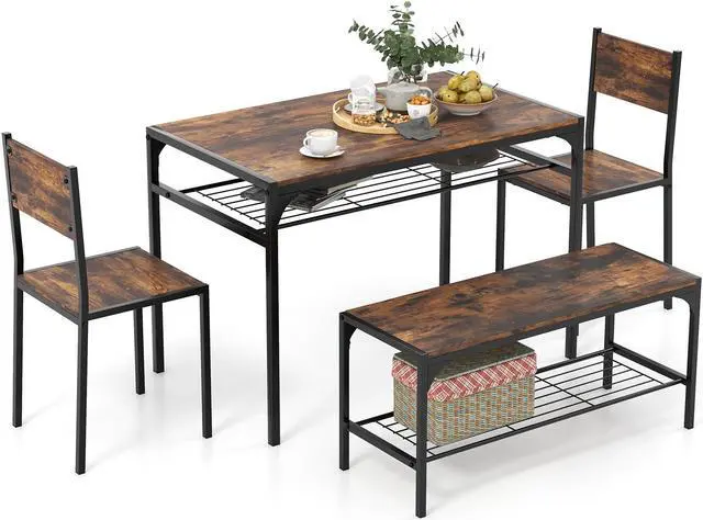 Complete 4-Piece Dining Set: Includes one rectangular table, two ergonomic chairs, and one versatile benchperfectly sized to accommodate up to four people for breakfast, dinner, or game night.