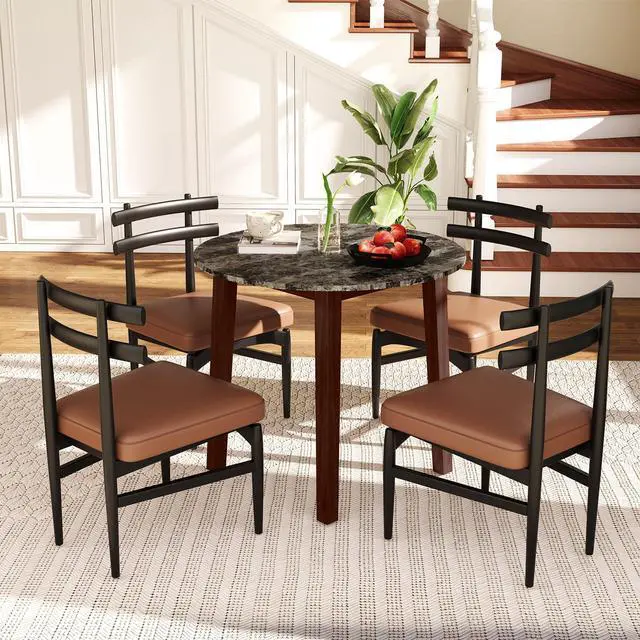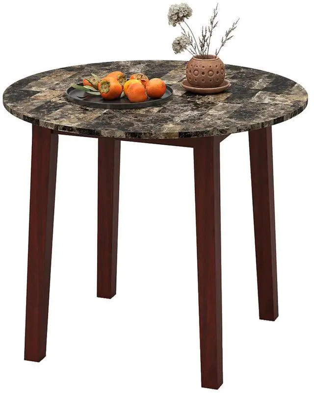 Wide Elegant Tabletop: Equipped with a 35"/89cm diameter round tabletop, this dining table offers ample space for meals, work, or displaying decorative items. Its marble-textured veneer adds a touch of sophistication and elegance to any room, making it a centerpiece for gatherings and everyday use.