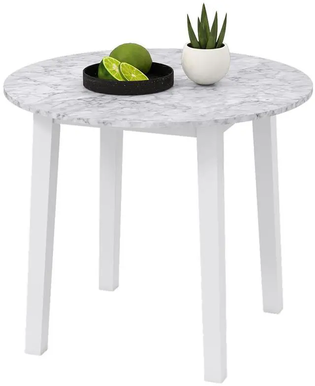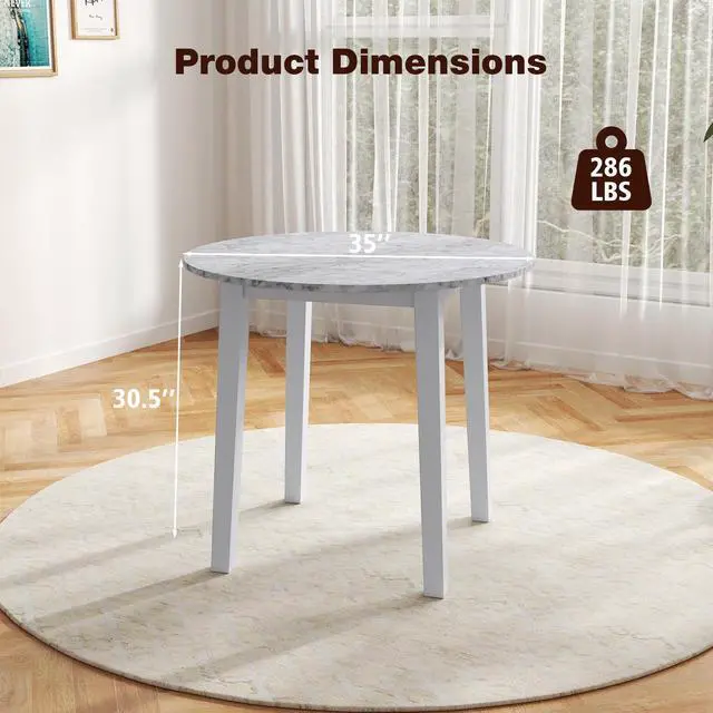 Wide Elegant Tabletop: Equipped with a 35"/89cm diameter round tabletop, this dining table offers ample space for meals, work, or displaying decorative items. Its marble-textured veneer adds a touch of sophistication and elegance to any room, making it a centerpiece for gatherings and everyday use.