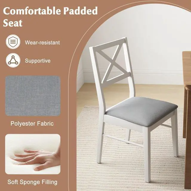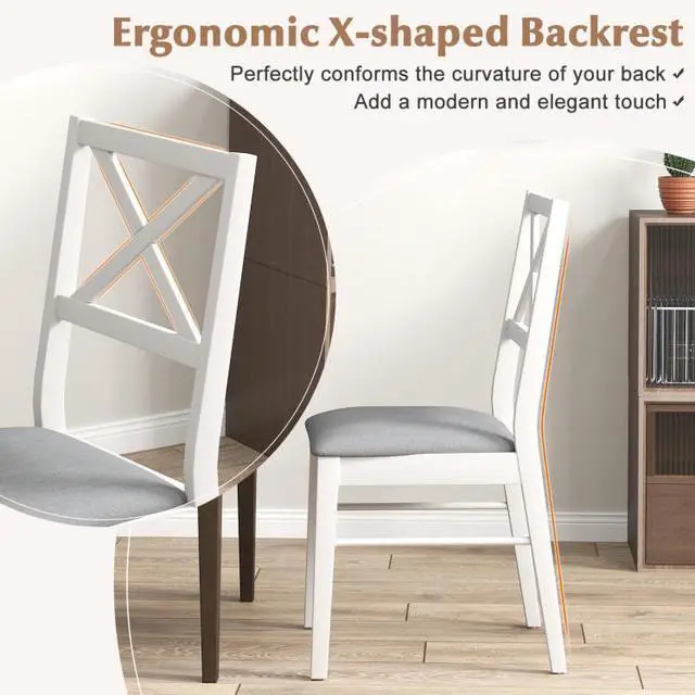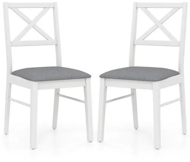 SlickBlue Upholstered Side Dining Chairs Set of 2 with Rubber Wood Frame-White