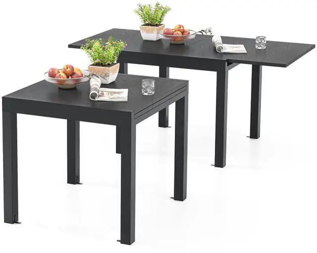 Extendable Dining Table: The aluminum dining table offers an adjustable length of 31.5"/80 cm, extending up to 63"/160 cm to cater to your needs. The clever design allows for swift transformation from an intimate meal setting to a spacious platform for larger groups.