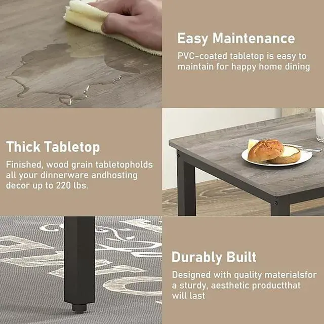Compact & Stylish Dining Table Set Perfect for small spaces, this 43.3" L × 23.6" W × 29.9" H dining set seats up to 4 people. Built with durable engineered wood and a sturdy steel frame, it offers excellent stability and a sleek modern look. The space-saving design allows benches to tuck neatly under the table, making it ideal for apartments and kitchens. Easy to assemble and maintain, this set combines functionality with style for a perfect dining experience. Update the look of your dining area with the Aukfa 3-Piece Wood and Metal Dining Set.