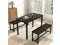 Compact & Stylish Dining Table Set Perfect for small spaces, this 43.3" L × 23.6" W × 29.9" H dining set seats up to 4 people. Built with durable engineered wood and a sturdy steel frame, it offers excellent stability and a sleek modern look. The space-saving design allows benches to tuck neatly under the table, making it ideal for apartments and kitchens. Easy to assemble and maintain, this set combines functionality with style for a perfect dining experience. Update the look of your dining area with the Aukfa 3-Piece Wood and Metal Dining Set.