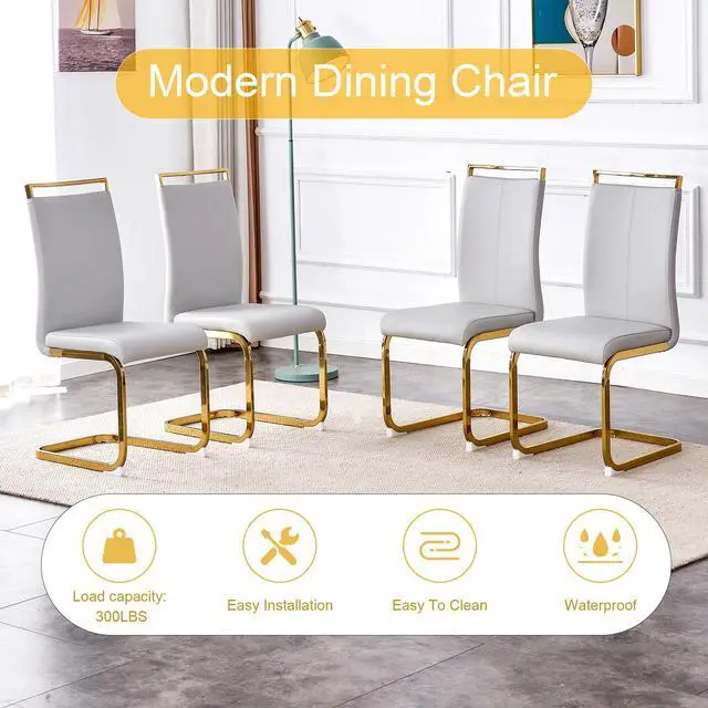 • Black Table and 4 Light Gray Chairs Golden Leg
