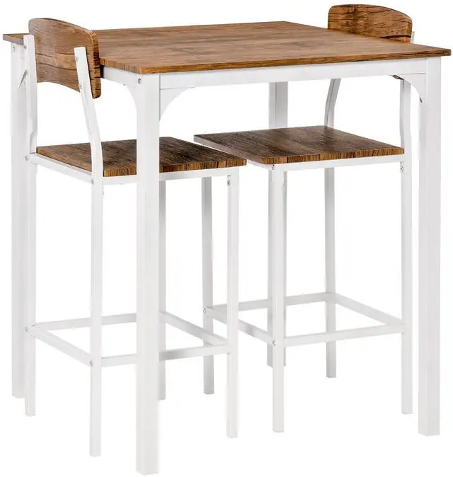 Dining Set: We are happier when we eat together. This functional bar table set includes a square table, and two stools. The 31.5" x 31.5" surface fits 2 people for quick workday snacks, morning coffee, or family gatherings.