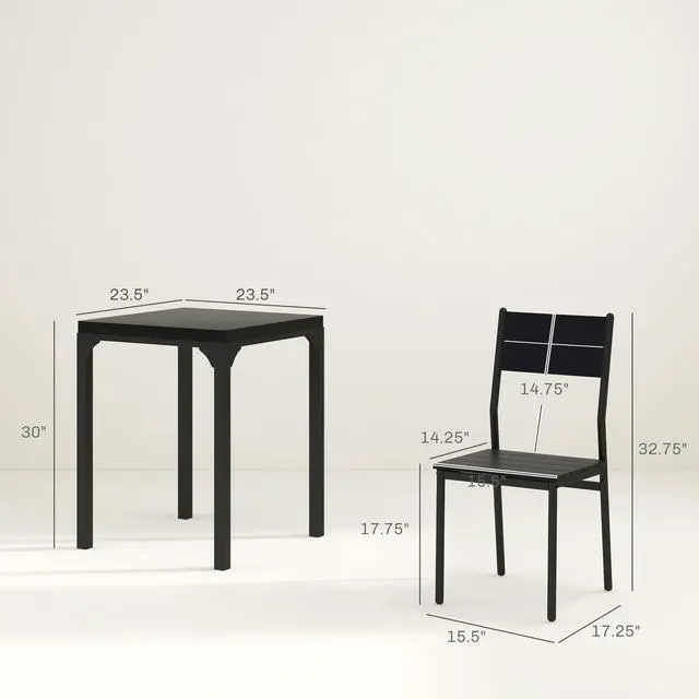 3 Piece Dining Table Set for 2, Modern Kitchen Table and Chairs, Dining Room Set for Breakfast Nook, Small Space, Apartment, Space Saving, Black