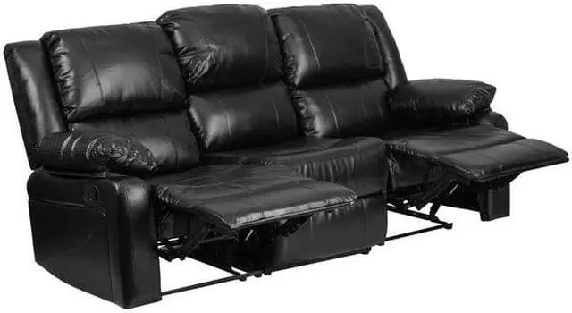 If you've always had traditional living room furniture but are looking for something a little different, this reclining loveseat is just what you need. Reclining furniture offers the best of both worlds with a recliner like feel, but large enough to fit guests and use like a conventional loveseat. Recliners may relieve stress, help with aching joints and pains and can even improve circulation! LeatherSoft upholstery, generously padded plush arms and pillow back cushions cradle you in comfort for that morning cup of coffee or an afternoon nap. LeatherSoft is leather and polyurethane for added softness and durability.