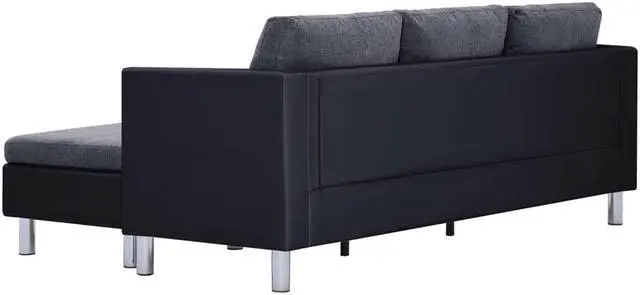This sofa features wide seats and thickly-padded cushions for the ultimate seating comfort. The sofa set is upholstered with glossy and durable artificial leather, which makes it easy to clean. The corners are sturdily constructed and have durable, chrome-plated iron feet. This versatile sectional sofa features a chaise longue that can be placed on either side of the loveseat, making it a great choice for many living room configurations.