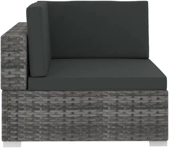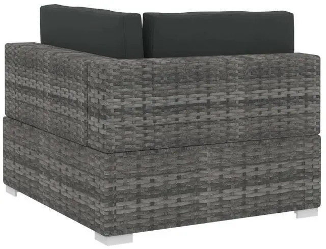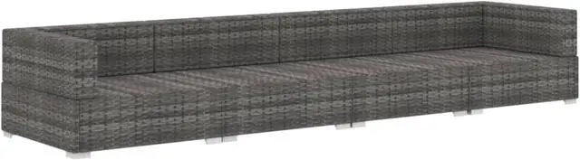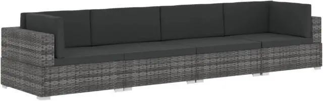 vidaXL 4 Piece Garden Sofa Set with Cushions Poly Rattan Gray - 48327, Enjoy your outdoor leisure time with our elegant poly rattan sofa set. This sofa set can well fit in courtyards, poolside, gardens, etc. Constructed from durable hand woven PE rattan over a powder-coated steel frame, this sofa set is strong, sturdy and weather resistant. Thanks to the all-weather PE rattan, it is easy to clean, hard-wearing and suitable for daily use. Wide armrest, thick padded seat and back cushions provide ultimate comfort in your seating experience. Adjustable levelers ensure stability on uneven surfaces. Delivery includes 2 corner sofas, 2 middle sofa, 4 seat cushions and 6 back pillows. Note: We recommend covering the rattan set in the rain, snow and frost.