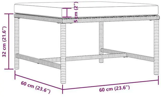 Dimensions: 23.6 x 23.6 x 12.6 in (W x L x H)