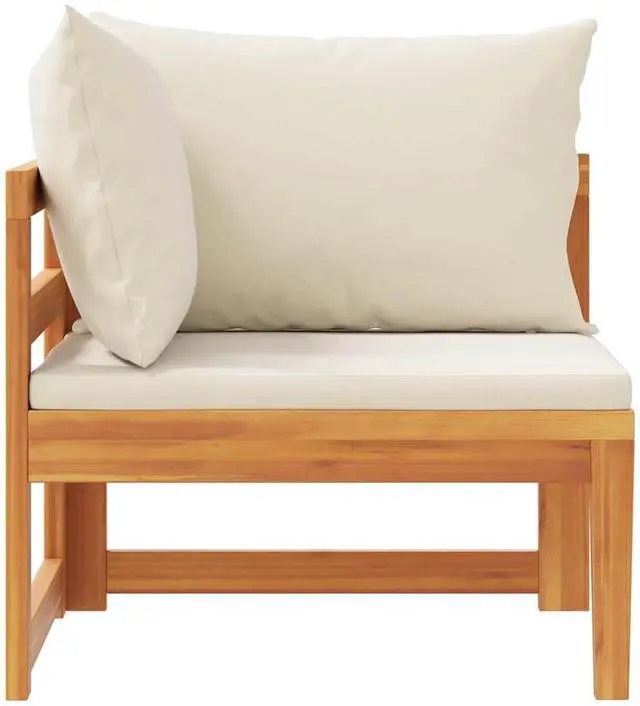Enjoy a cozy leisure time with your friends or family in the outdoor space on this wooden patio corner sofa! This garden corner sofa is made of solid acacia wood, a hardwood with dense grains. This beautifully-designed outdoor corner sofa is stable, durable and eye-catching. Additionally, the exquisite craftsmanship and beautiful wood grains make every piece slightly different from the next. In addition, the included cushions add more comfort while resting.