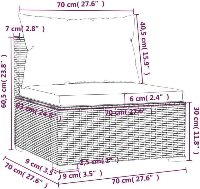 Seat cushion dimensions: 27.6" x 24.8" x 2.4" (L x W x T)